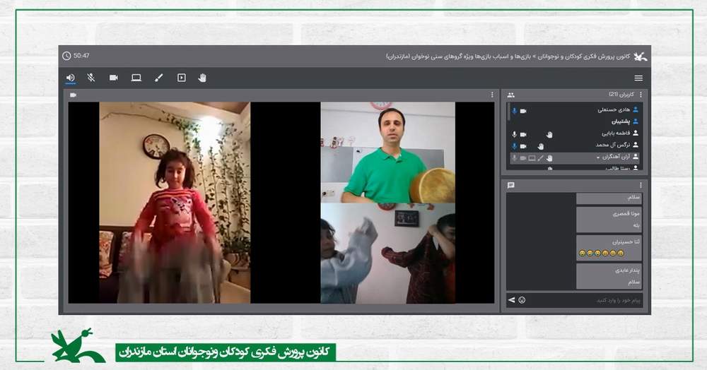 کارگاه «بازی و اسباب بازی» و «نمایش در خانه» دو مورد از کارگاههای مجازی کانون مازندران است که با حضور این هنرمند نمایش برگزار شده است و با استقبال خوب کودکان و خانوداهها همراه بود. در همین خصوص گفتگویی با این فعال حوزه کودک ونوجوان صورت گرفت.