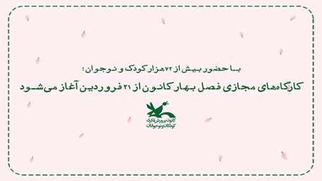 ترم بهار کارگاه‌های مجازی کانون پرورش فکری کودکان و نوجوانان از روز ۲۱ فروردین ۱۴۰۰ با حضور بیش از ۷۲هزار عضو کودک و نوجوان آغاز می‌شود.